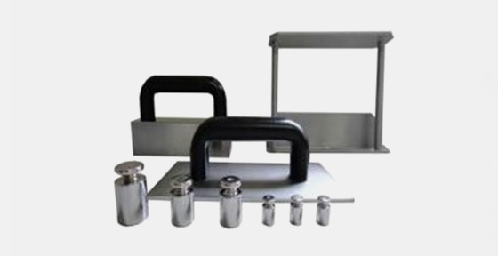 Estrutura: composto por chapa de formato, peso para a fixação da amostra, cantoneira fabricada em alumínio, jogo de 6 pesos e maleta de alumínio;